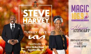 The annual Turkey Give presented by The Steve & Marjorie Harvey Foundationis November 26th at Fayetteville Kia during our LIVE broadcast.* Registration is required for this community event.*Turkey...